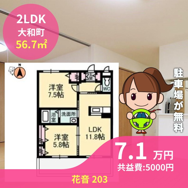 間取りは2LDKで56.7㎡の広さです