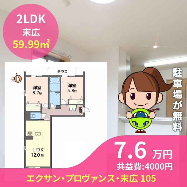 徳島市末広のエクサン・プロヴァンス・末広 105をご紹介します