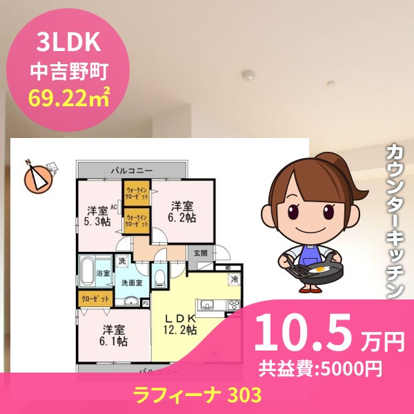 徳島市中吉野町のラフィーナ 303をご紹介します