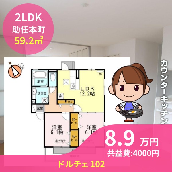 助任緑地が420mにあり、最寄りのスーパーはフジで徒歩5分、セブンイレブンも徒歩7分です。