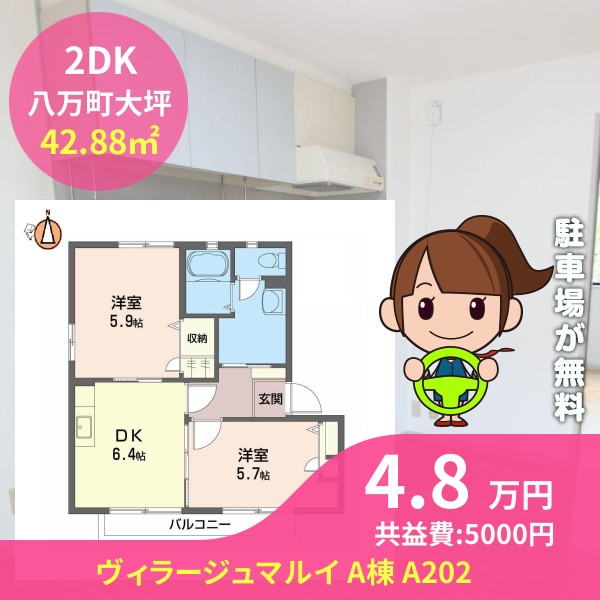 徳島市八万町大坪のヴィラージュマルイ A棟 A202をご紹介します