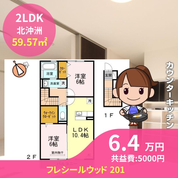 間取りは2LDKで59.57㎡の広さです