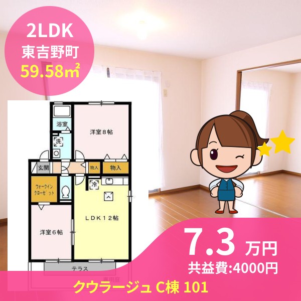 徳島市東吉野町のクウラージュ C棟 101をご紹介します