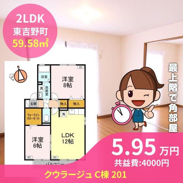 徳島市東吉野町のクウラージュ C棟 201をご紹介します