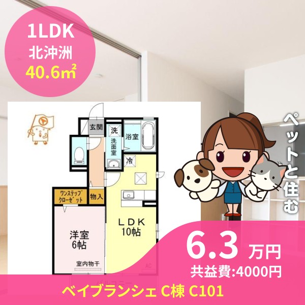 月額賃料は6.3万円で、共益費は4000円です