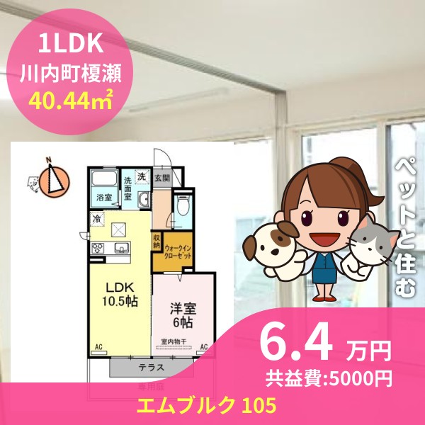 月額賃料は6.4万円で、共益費は5000円です