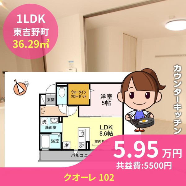 月額賃料は5.95万円で、共益費は5500円です