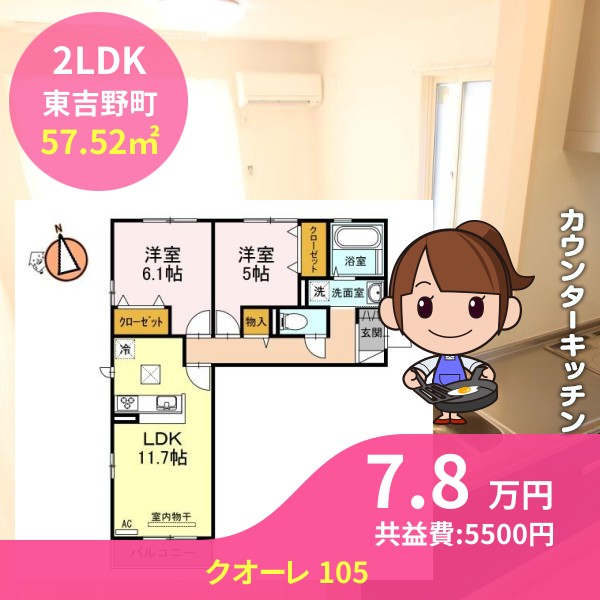 間取りは2LDKで57.52㎡の広さです