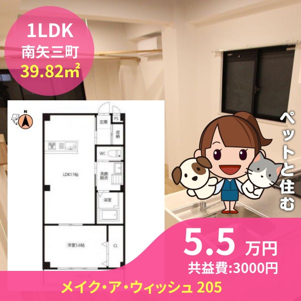 月額賃料は5.5万円で、共益費は3000円です