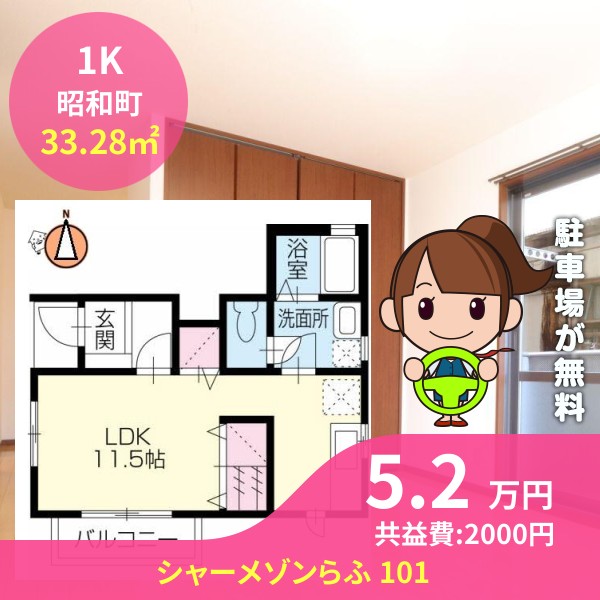 間取りは1Kで33.28㎡の広さです