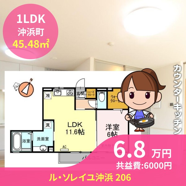 徳島市沖浜町のル・ソレイユ沖浜 206をご紹介します