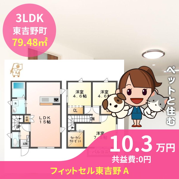 月額賃料は10.3万円で、共益費は無料です