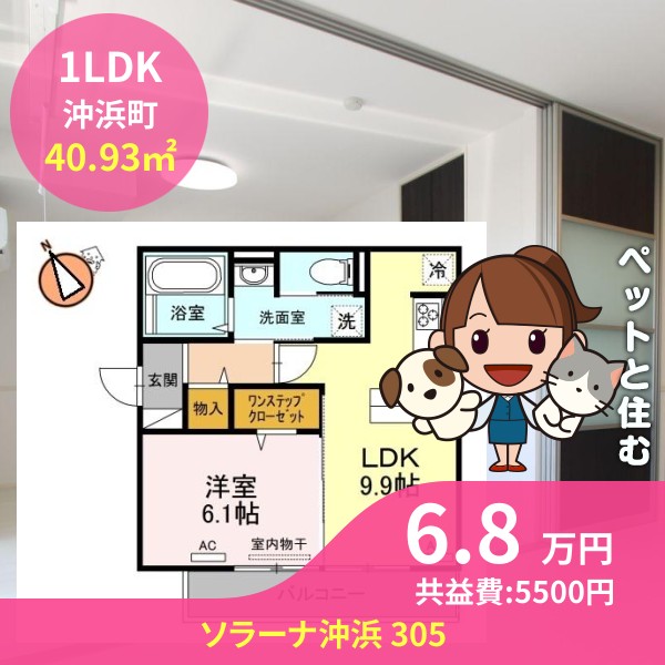 月額賃料は6.8万円で、共益費は5500円です