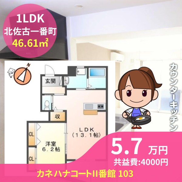 徳島市北佐古一番町のカネハナコートII番館 103をご紹介します