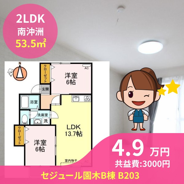 徳島市南沖洲のセジュール園木B棟 B203をご紹介します