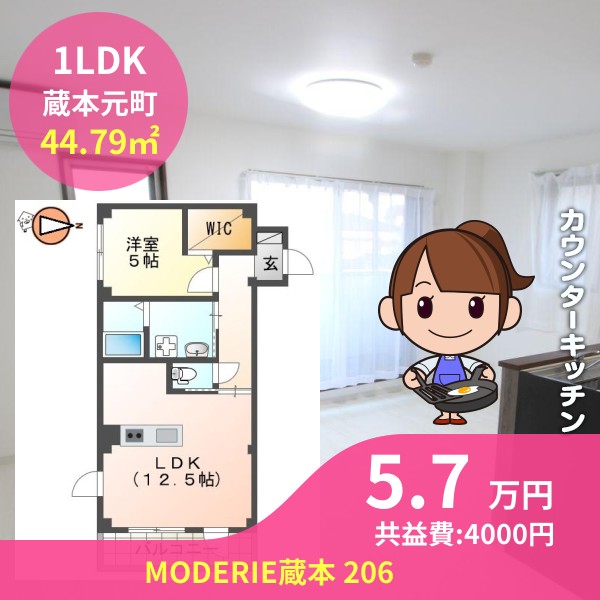 間取りは1LDKで44.79㎡の広さです