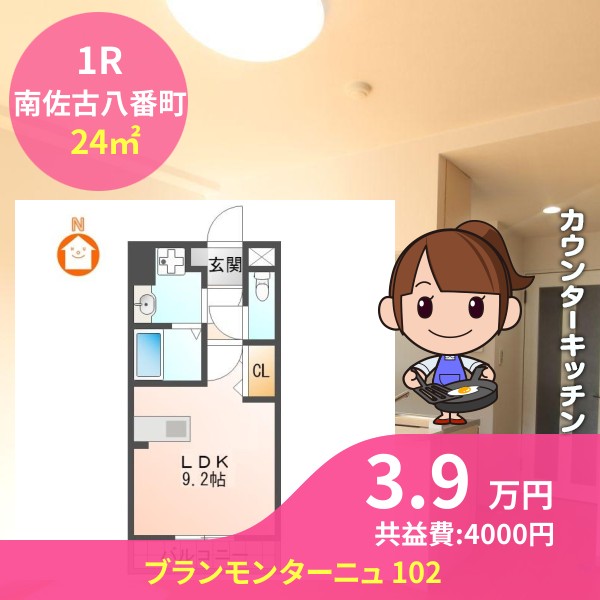 月額賃料は3.9万円で、共益費は4000円です
