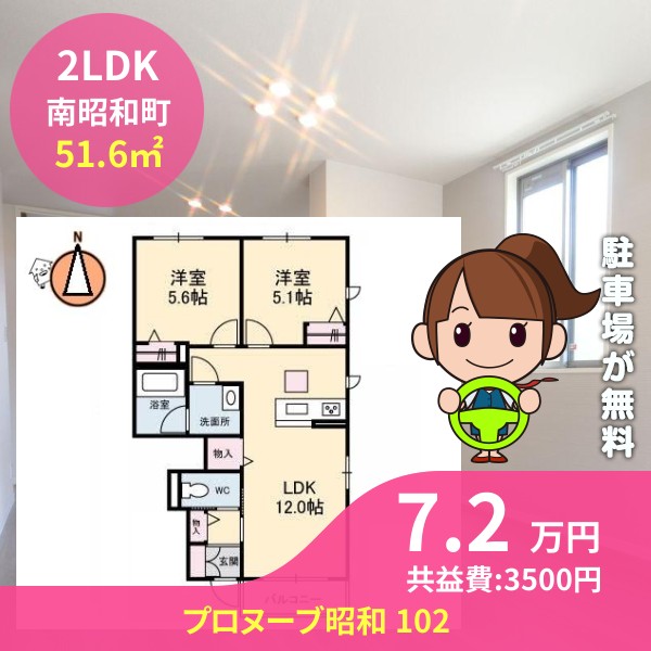 月額賃料は7.2万円で、共益費は3500円です