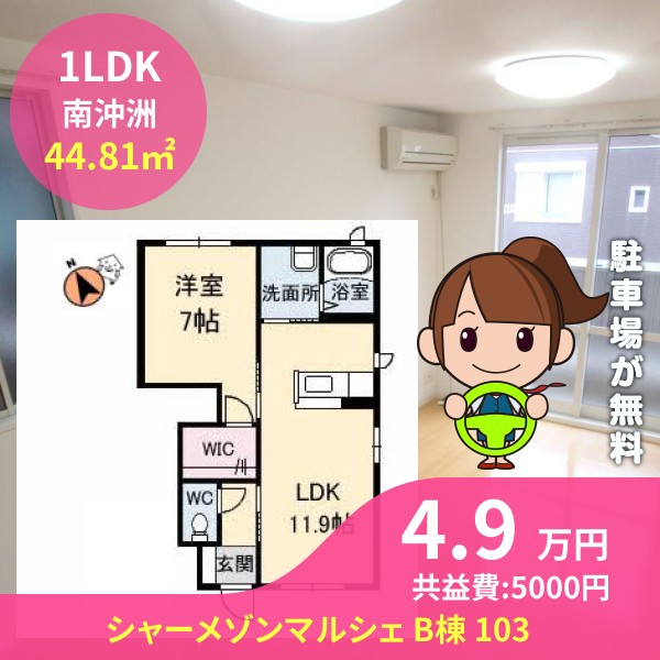 南沖洲公園が90mにあり、最寄りのスーパーはキョーエイで徒歩7分、ローソンも徒歩8分です。