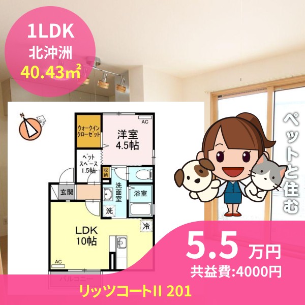 月額賃料は5.5万円で、共益費は4000円です
