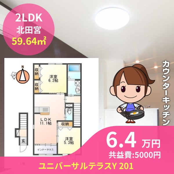 間取りは2LDKで59.64㎡の広さです