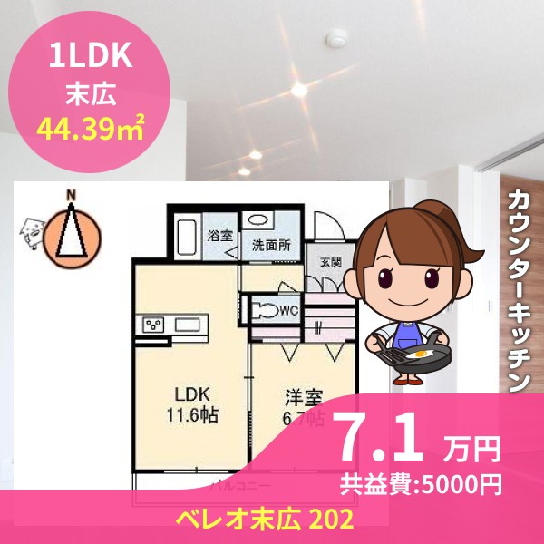 女性に特に喜ばれる独立洗面台のあるお部屋です
