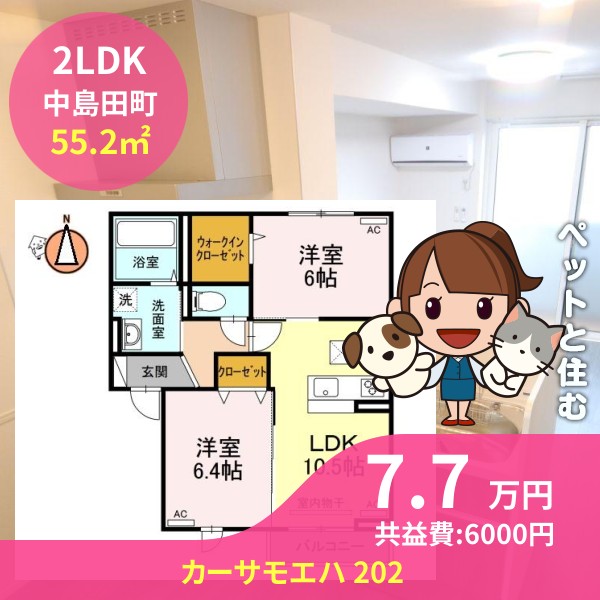 月額賃料は7.7万円で、共益費は6000円です