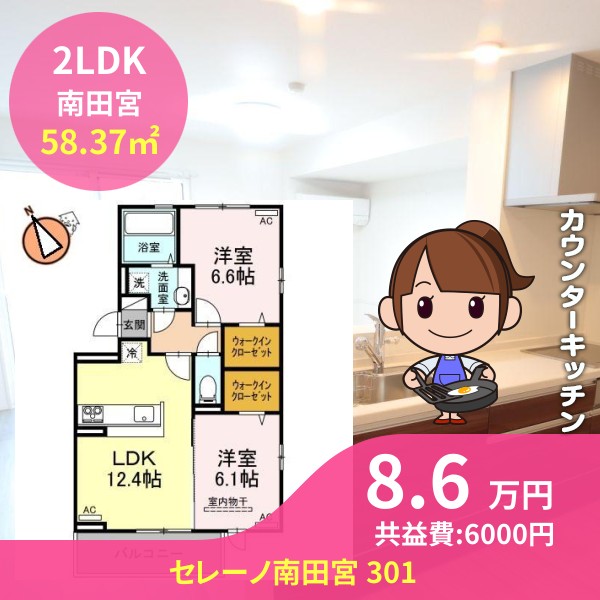 間取りは2LDKで58.37㎡の広さです