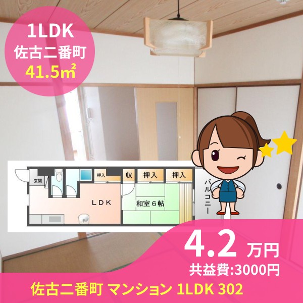 徳島市佐古二番町の佐古二番町 マンション 1LDK 302をご紹介します