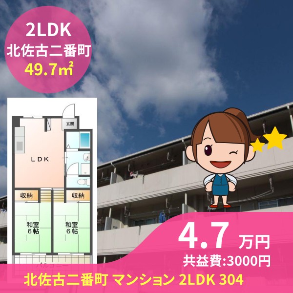 徳島市北佐古二番町の北佐古二番町 マンション 2LDK 304をご紹介します