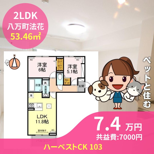 間取りは2LDKで53.46㎡の広さです
