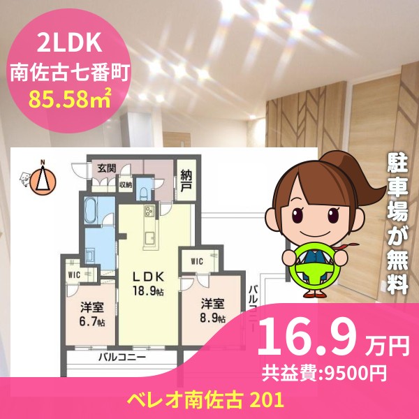 間取りは2LDKで85.58㎡の広さです