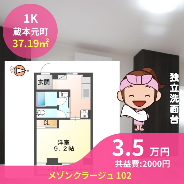 間取りは1Kで37.19㎡の広さです