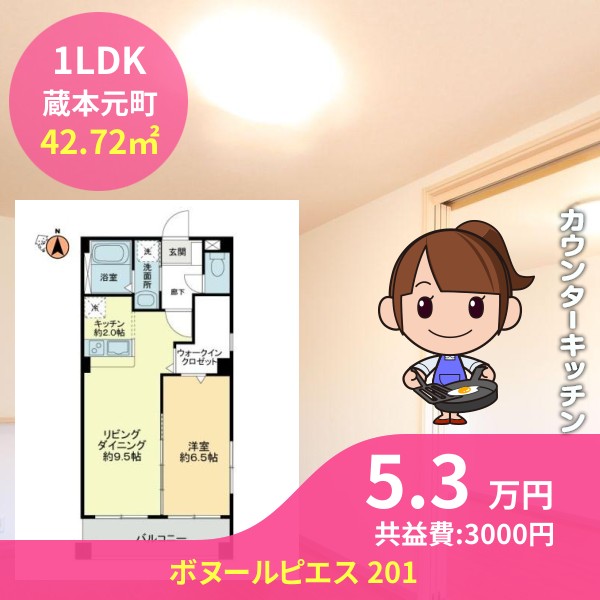 徳島市蔵本元町のボヌールピエス 201をご紹介します