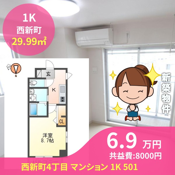徳島市西新町の西新町4丁目 マンション 1K 501をご紹介します