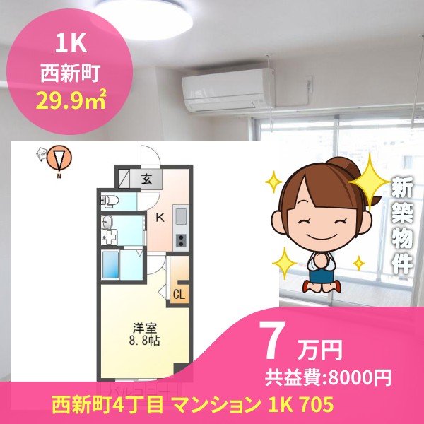 徳島市西新町の西新町4丁目 マンション 1K 705をご紹介します