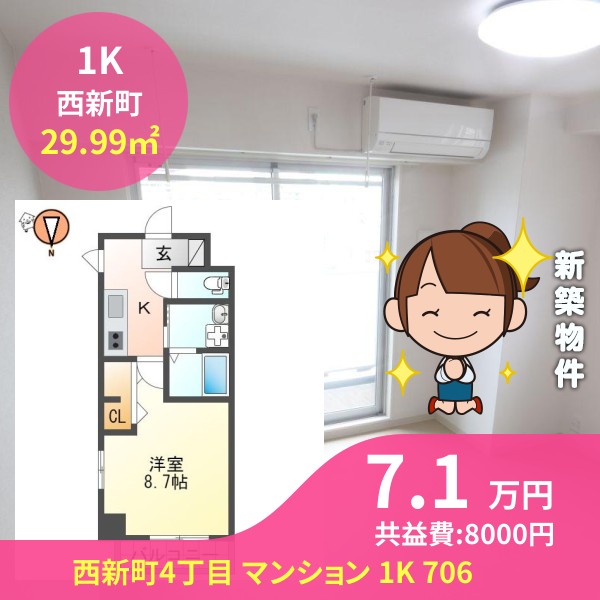 徳島市西新町の西新町4丁目 マンション 1K 706をご紹介します