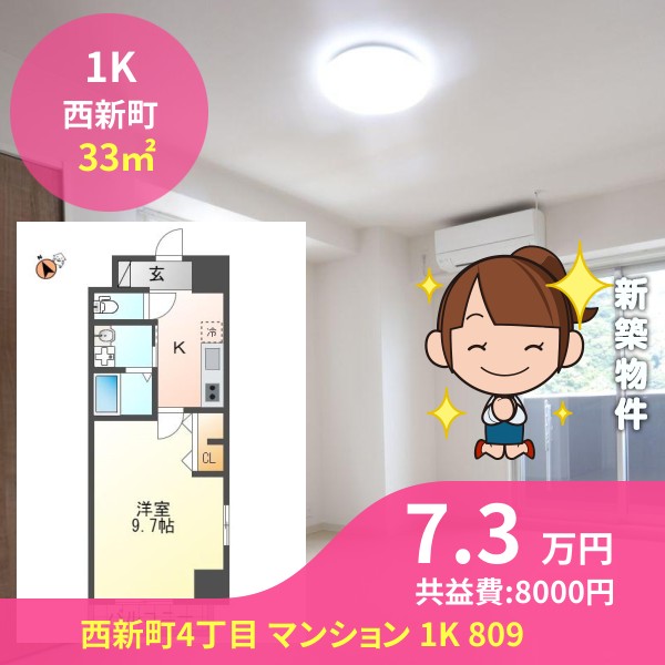 徳島市西新町の西新町4丁目 マンション 1K 809をご紹介します