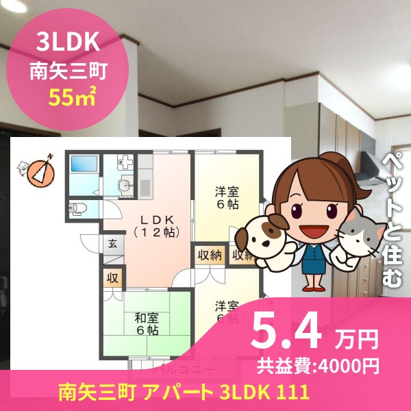 徳島市南矢三町の南矢三町 アパート 3LDK 111をご紹介します