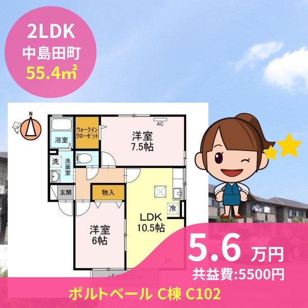 徳島市中島田町のポルトベール C棟 C102をご紹介します