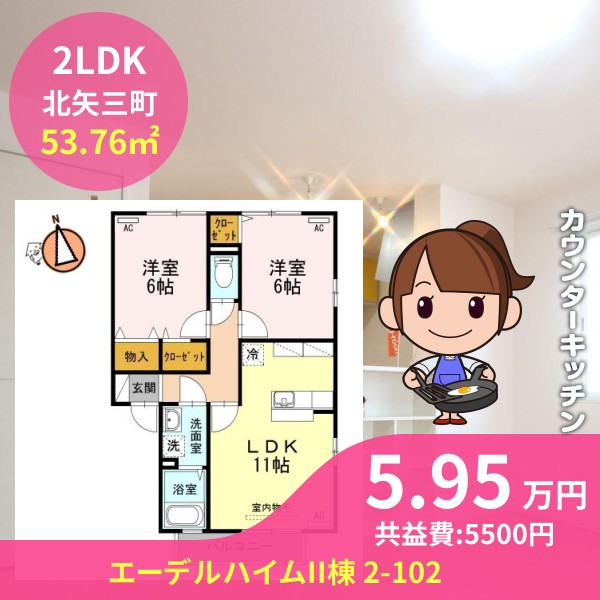 徳島市北矢三町のエーデルハイムII棟 2-102をご紹介します