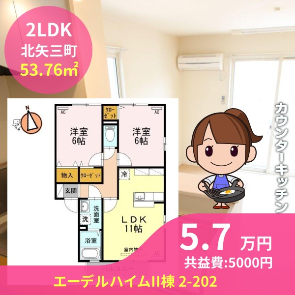 徳島市北矢三町のエーデルハイムII棟 2-202をご紹介します