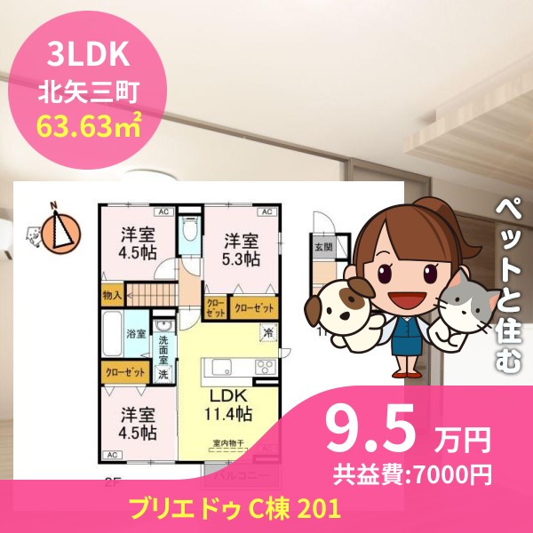 間取りは3LDKで63.63㎡の広さです