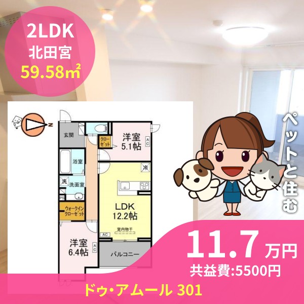 ペット可・相談で、公園も近くにあるので、たくさん一緒に遊べそうですね