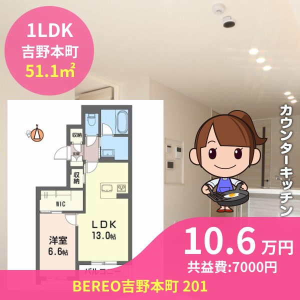 徳島市吉野本町のBEREO吉野本町 201をご紹介します