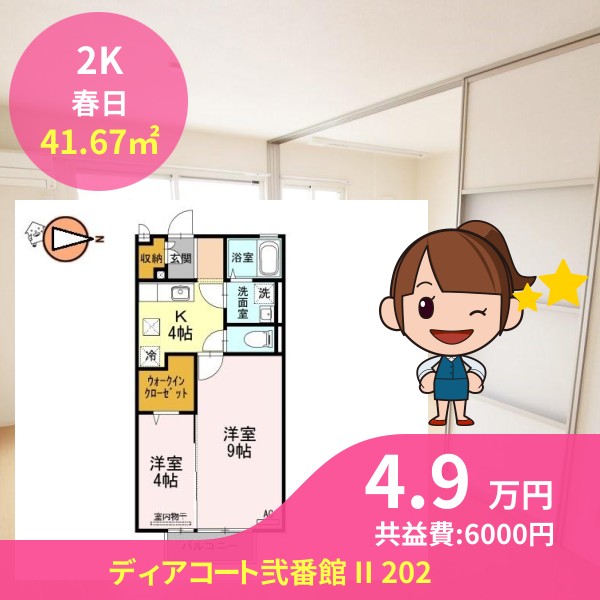 徳島市春日のディアコート弐番館 II 202をご紹介します