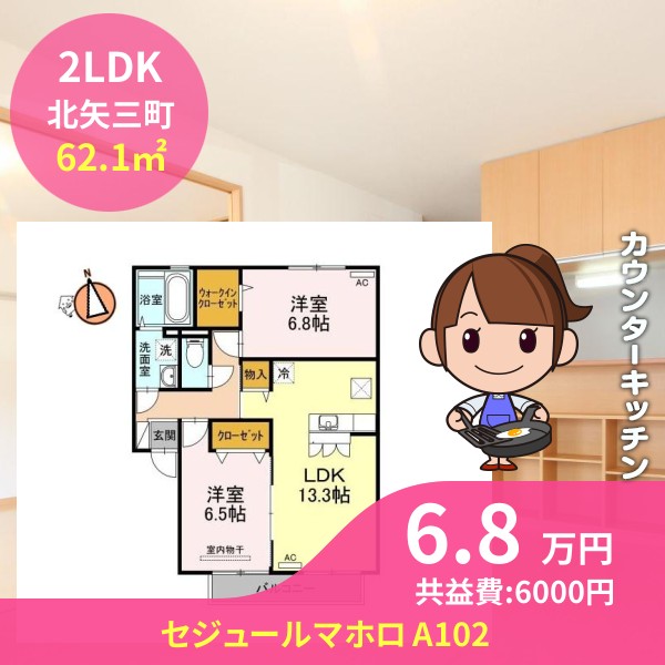 間取りは2LDKで62.1㎡の広さです