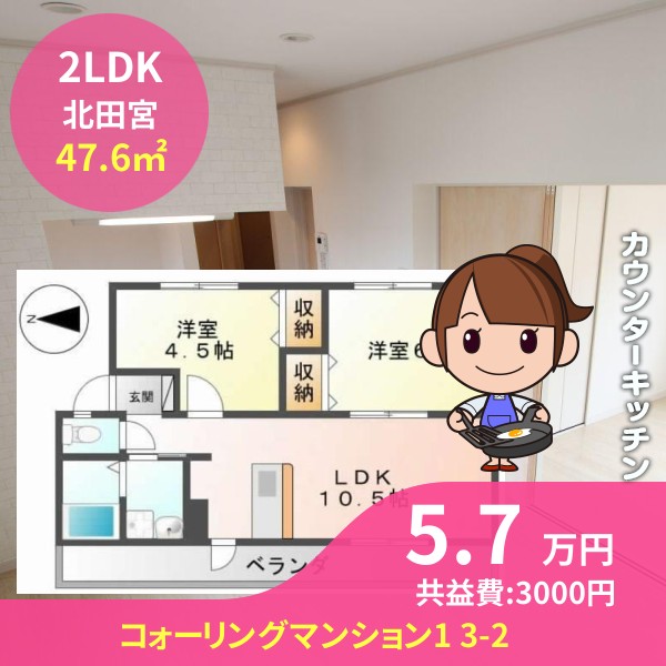 徳島市北田宮のコォーリングマンション1 3-2をご紹介します