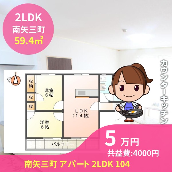南矢三町 アパート 2LDK 104