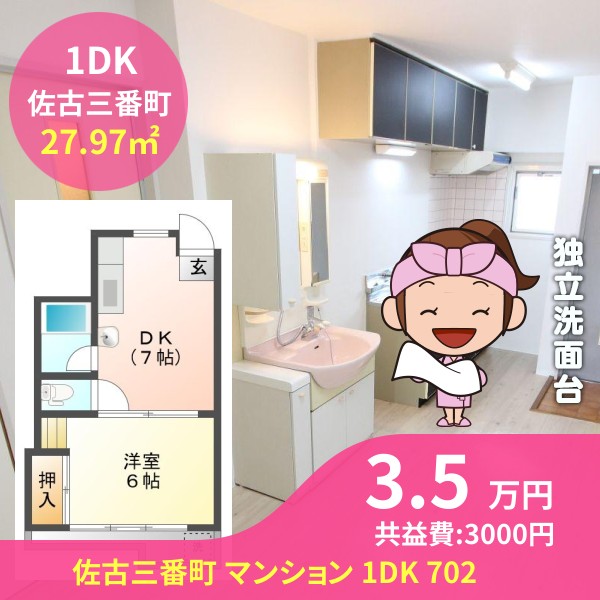 女性に特に喜ばれる独立洗面台のあるお部屋です